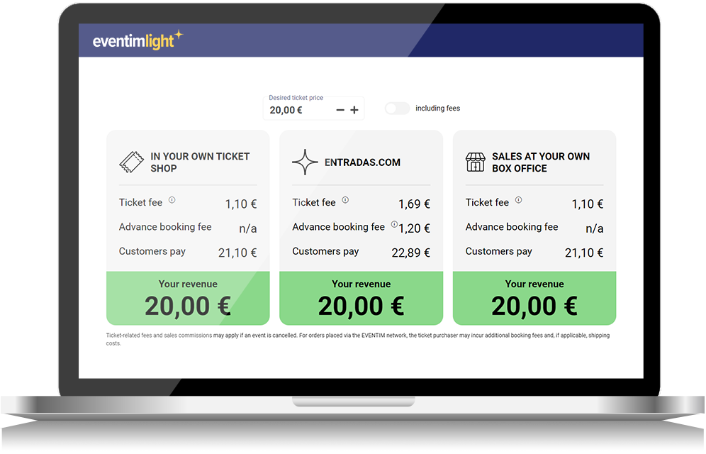 Only a few clicks separate you from your individual and professional online ticket shop. Start selling tickets today.